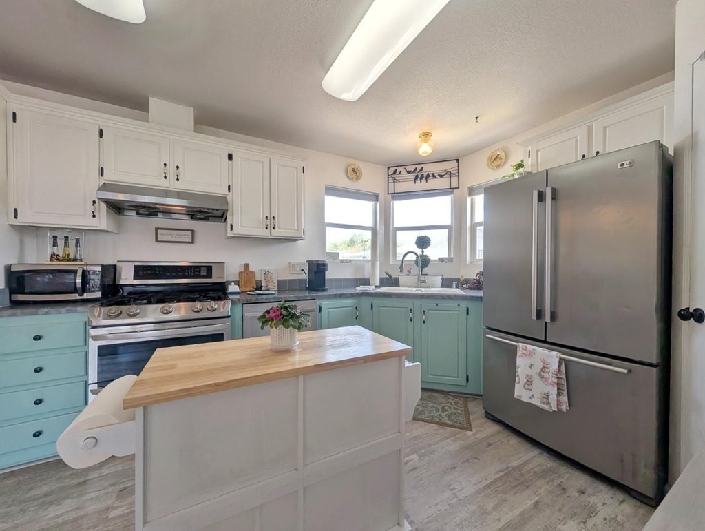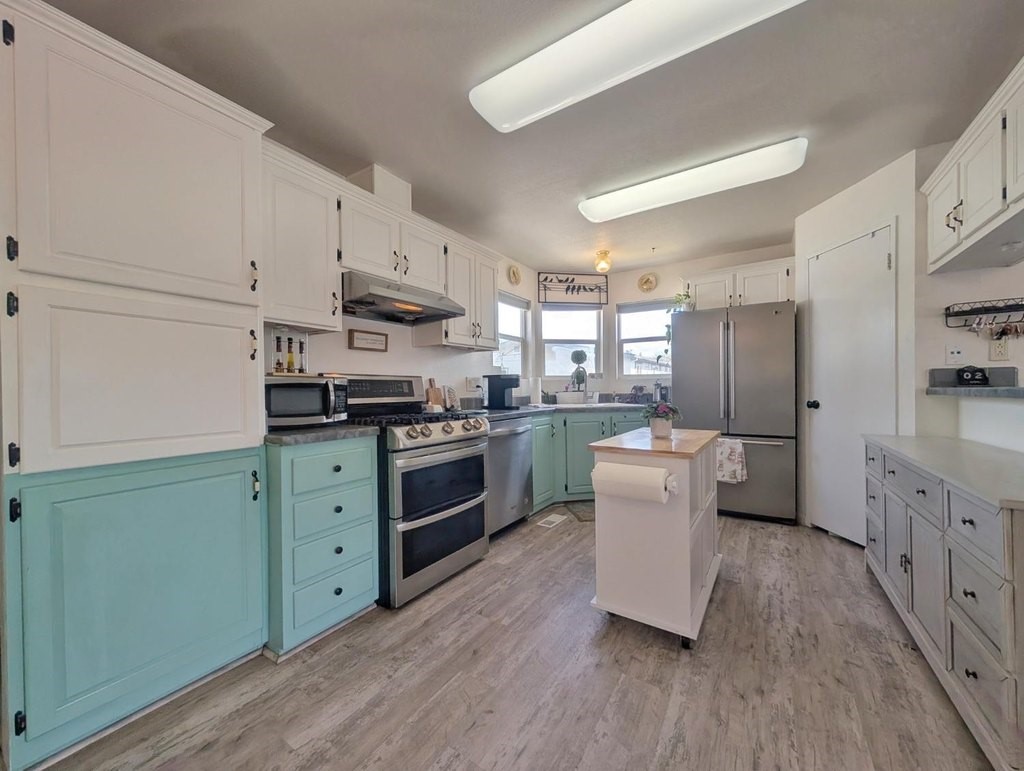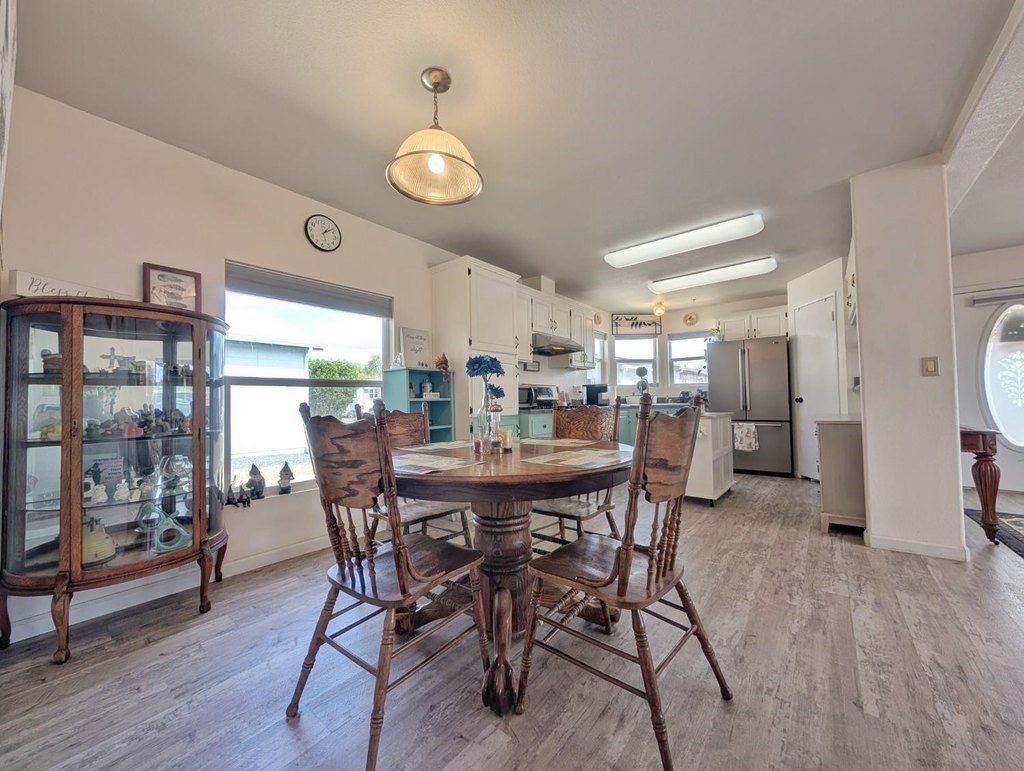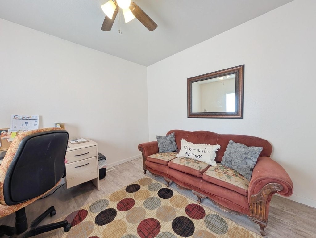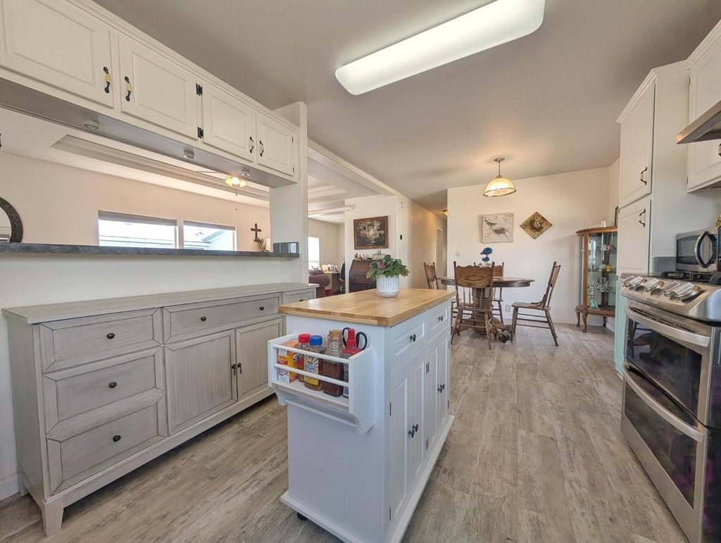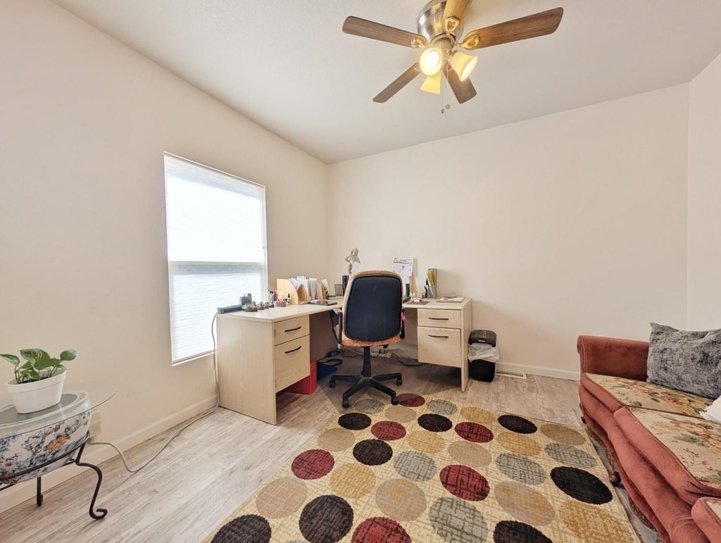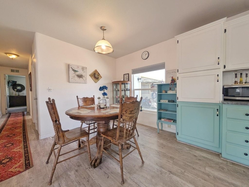 Located at the end of a cul-de-sac in The Oaks, a beautiful, gated community where you OWN your land and Traditional Financing is Available! This 2-bed +Den (optional 3rd bedroom), 2-bath home features a new roof, gutters, and front door awning (2024). Inside, enjoy new luxury vinyl flooring throughout, tray ceiling with crown molding in the living room, and an Ecobee thermostat for energy efficiency. The kitchen offers an abundance of two-tone cabinetry, new valance lighting, a shelved pantry, stainless steel appliances, 6-burner gas stove, with the refrigerator, island, and buffet table to convey. The primary bath includes a dual vanity, large soaking tub, and separate shower, laundry/mud room features cabinetry/shelving and space for an upright fridge/freezer. The fully fenced backyard has auto-timed drip irrigation, a canvas-covered gazebo, and a side yard with stepping-stones. A great space for entertaining! The two-car garage includes an opener, workbench, with plenty of storage options. Central heat & air and park-owned solar for lower utility costs (10.6/KW for the first 7, 500 annual hours). Community amenities include a pool, rec room, playground, stocked fishpond and optional RV/boat parking. Come see for yourself and Love where you Live!